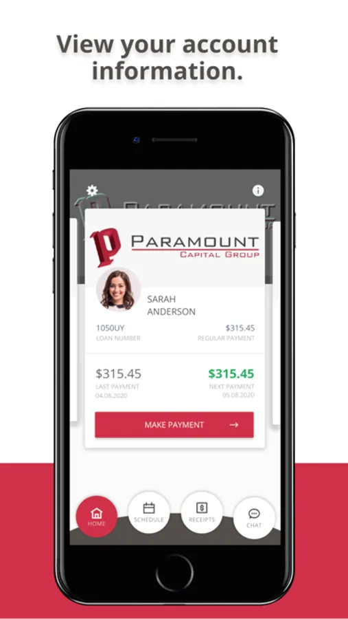 Make and schedule your payment in real-time. The Paramount Capital mobile app is the easiest way to make your payment, see your payment history, and chat with customer service. It's fast and easy.