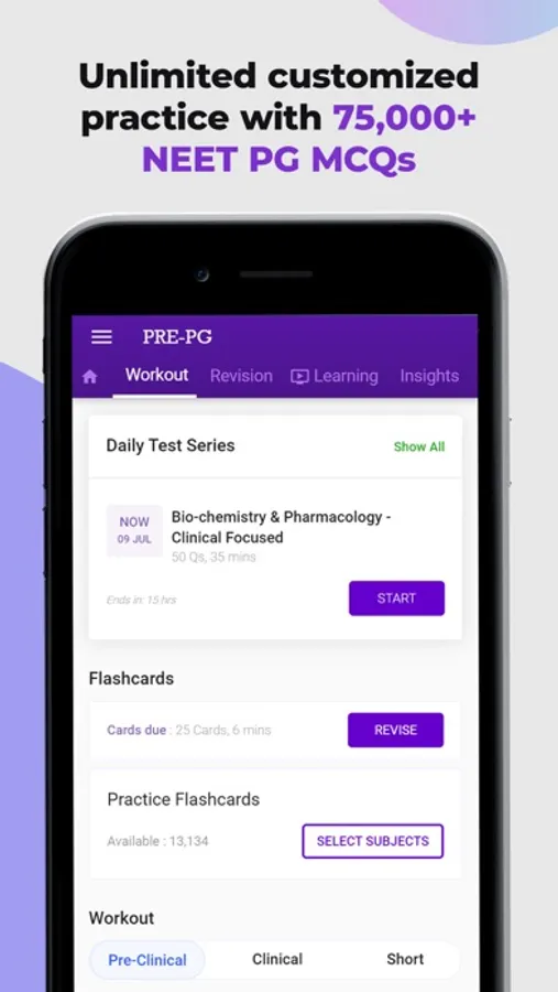 Unlimited Practice: Pre-PG Prep provides unlimited practice questions for NEET PG Exit Test, INICET, NEXT 2024, JIPMER, FMGE and other medical pg exams.