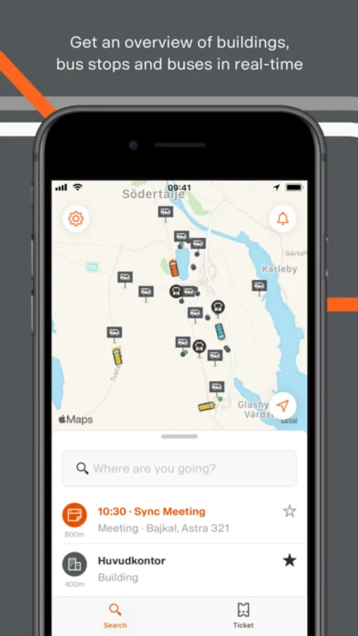 The Scania Go app connects all of this to you, to help you navigate and travel simpler and more efficiently around Södertälje.