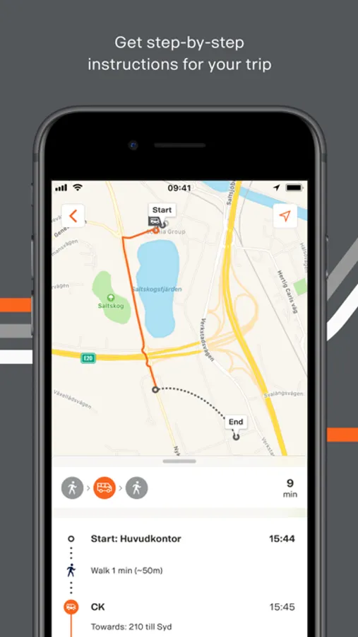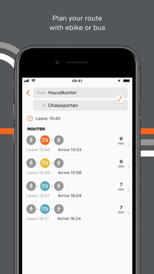 • Plan your trip and see the fastest way to travel, using Scania Job Express, shuttle buses, e-bikes or walking.