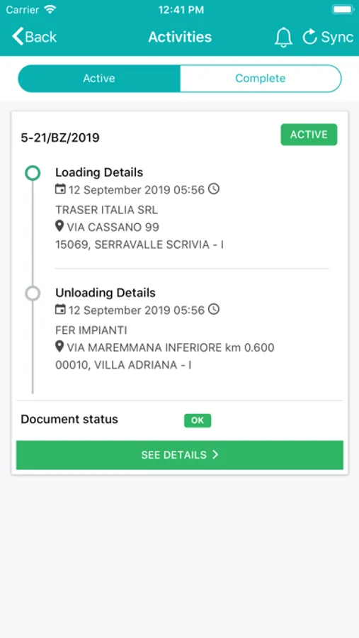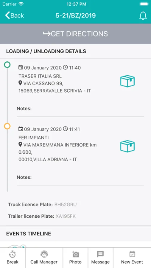 APP used by the Gruber Logistics carriers to carry out freight transports