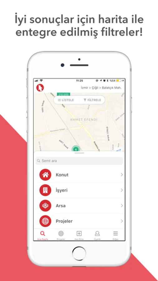 Bölgenize özel ilanların üzerinde satılıkkiralık fiyatlarıyla birlikte görüntüleyebilir ve listeleme seçeneğiyle sadece istediğiniz kategoride emlakları görüntüleyebilirsiniz.