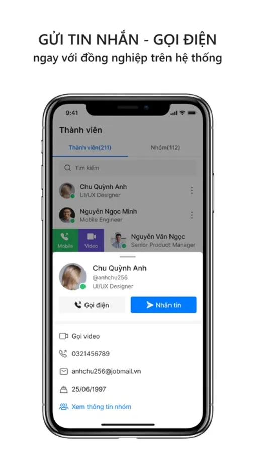- Gửi tin nhắn/Gọi điện ngay với đồng nghiệp trên hệ thống.