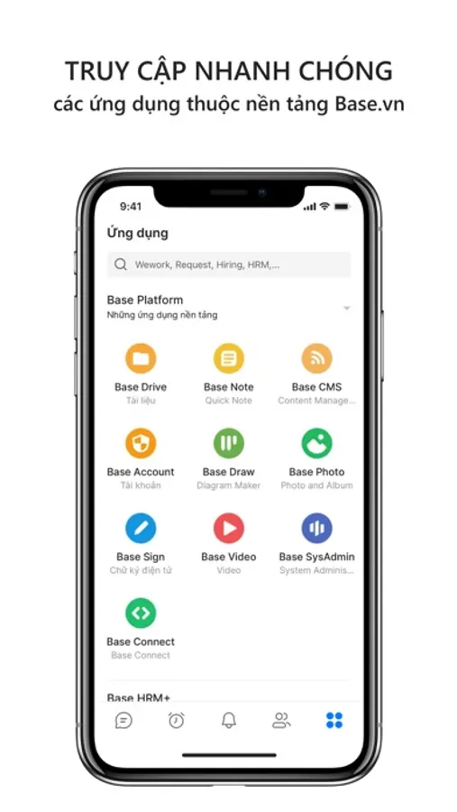 - Truy cập nhanh chóng các ứng dụng thuộc nền tảng Base để xử lý công việc nhanh chóng mọi lúc mọi nơi.