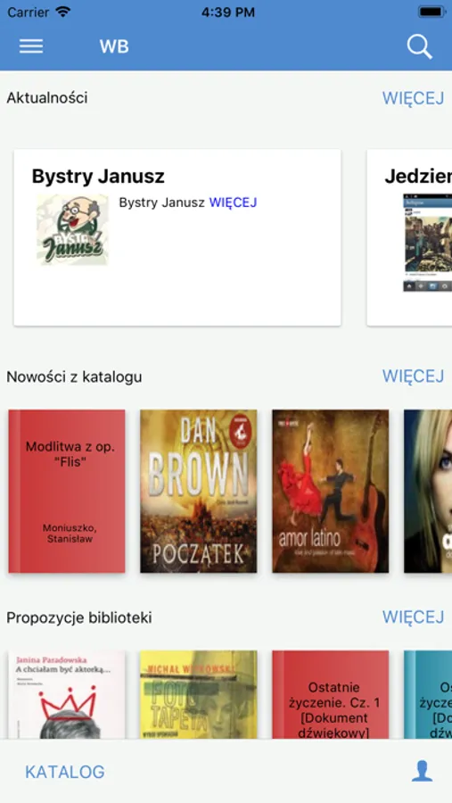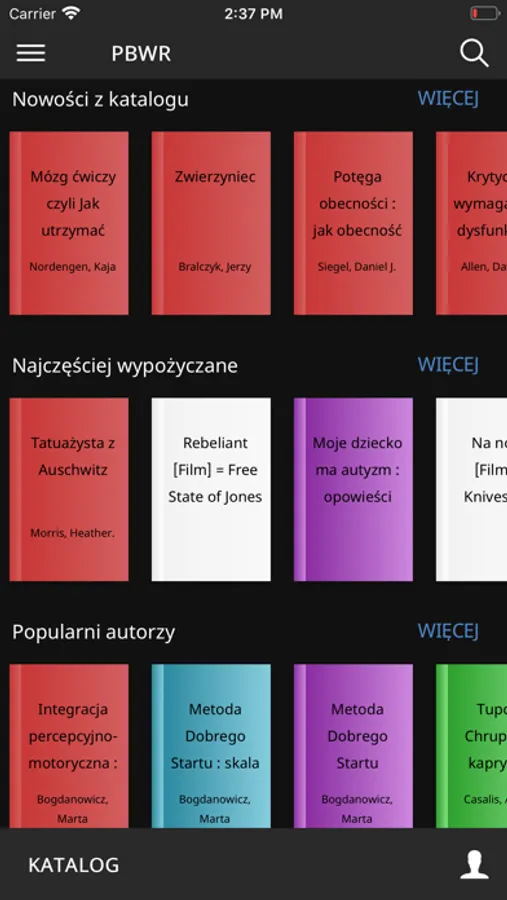 Aplikacja w pełni obsługuje katalog biblioteki oraz konto czytelnika biblioteki.