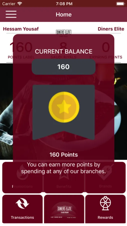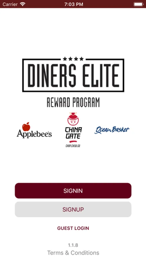 As a Diners Elite member, you will be rewarded points for all your purchase at any of our restaurants: Applebees, China Gate and Ocean Basket. We will constantly be updating the application to offer you the most personalized service and rewarding your loyalty to the maximum.