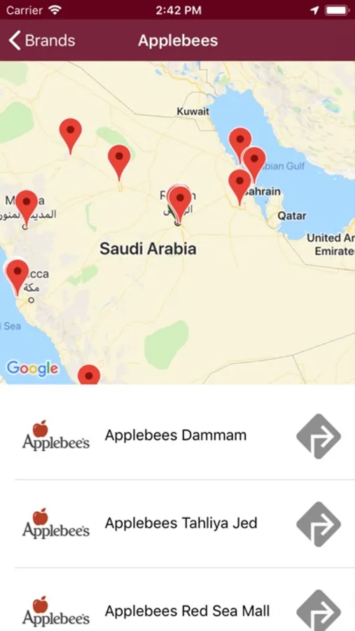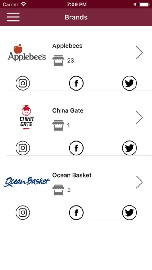 4. The application provides Members with all the Restaurant Locations of Applebees, China Gate and Ocean Basket.