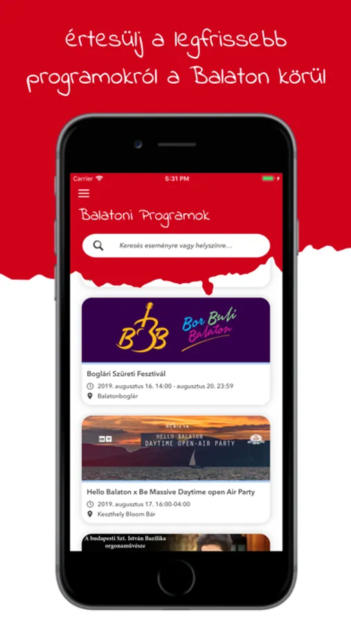Ez az alkalmazás összegyűjti neked a Balaton körül megrendezésre kerülő programokat. Előfordult már veled, hogy lemaradtál valamiről, mert nem jutott el hozzád a híre? A Balaton körül többé ilyen nem lesz!