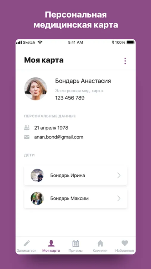 - управление записью других членов семьи (детей) из одного приложения (мультиаккаунт).