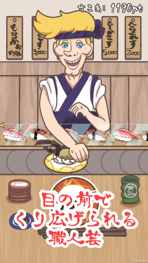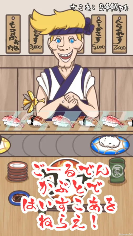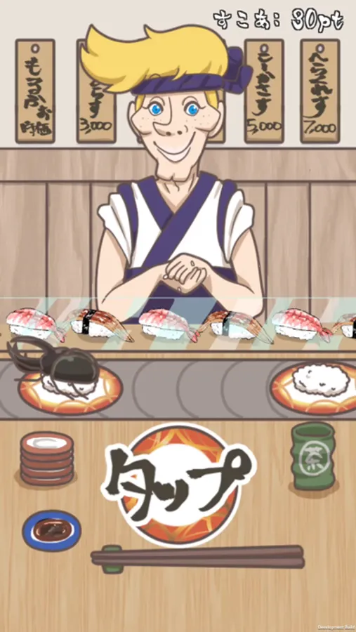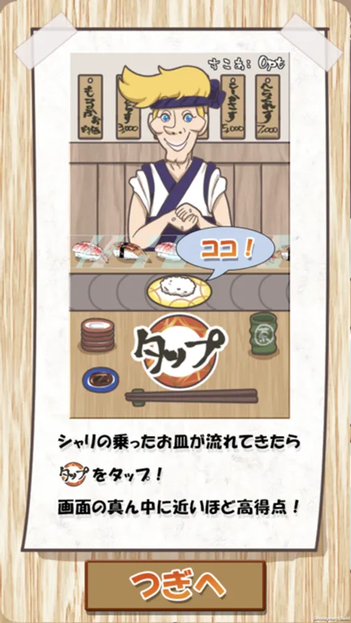 流れてくるシャリにカブトムシをタイミングよく乗せハイスコアを狙おう!