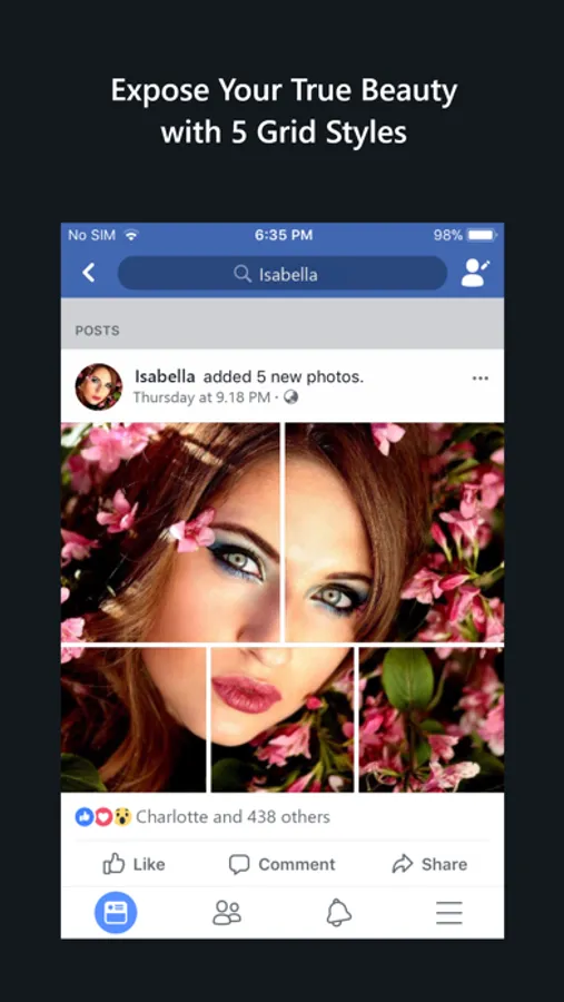Save time and surprise friends just by choosing the special photo you want to show off on your Facebook through our app. You will love the neat and user-friendly interface of photo editing tool. Import a picture from your camera roll; personalize your Facebook photo outlook by choosing a collage layout from the given layouts in the app followed by Facebook; and save the edited photo in camera roll that we just split.