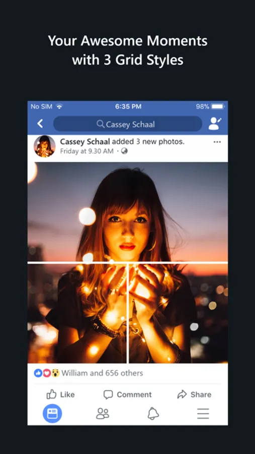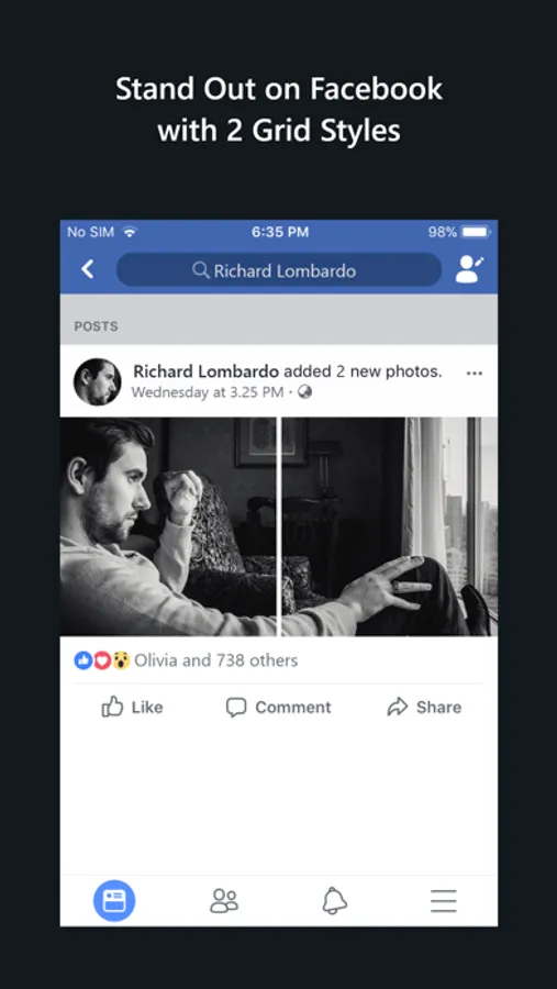 With an easy, quick and smart way, Grido will help you stand out from the crowd on Facebook. It is specially built for Facebook Photos to split one photo into multiple photos and upload them sequentially to make them look like a single photo.