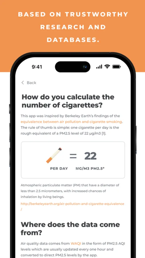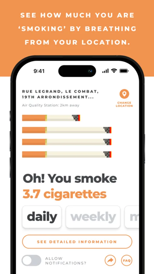 So we created this quick application for you to know how many cigarettes you are smoking in your city. You can share the number and help raise awareness about the risks of air pollution.