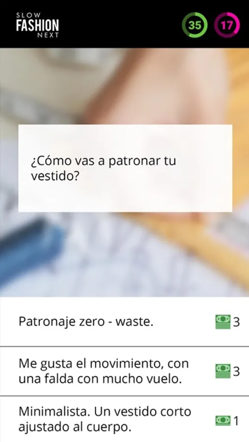 A través de una serie de preguntas, aprenderás todos los secretos de la industria de la moda y algunas de las ventajas que te ofrece la moda sostenible. Tus decisiones influirán en tu presupuesto y puntuación finales, ¡así que elige con cuidado!