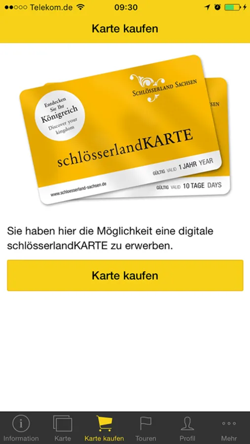 NOTE: As of September 4, 2023, it will no longer be possible to purchase schlösserlandKARTEN via this app. Please use the "Schlösserland erleben" app for your ticket purchase.