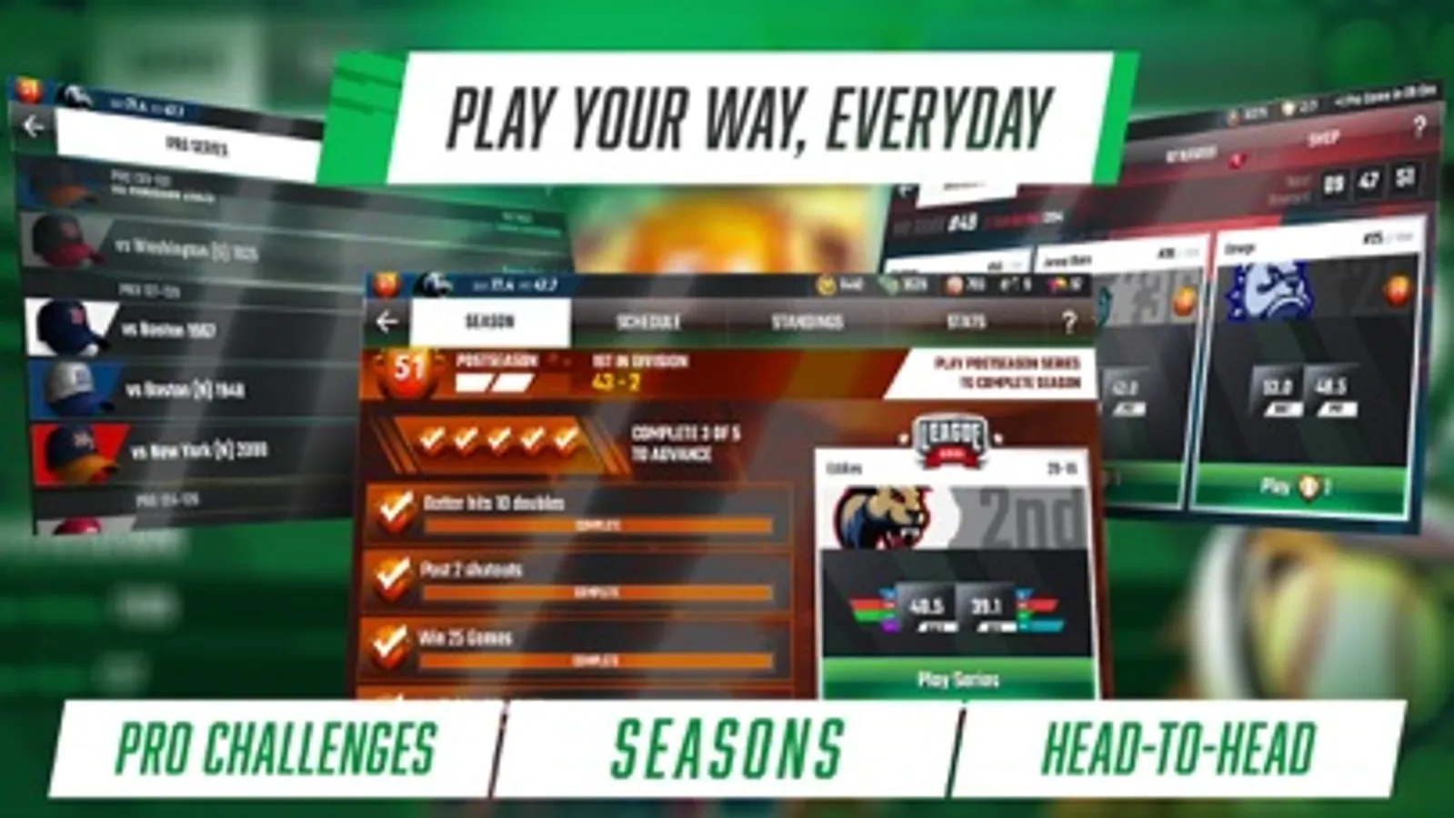 Swing for the fences every single day. Play 45-game seasons, exhibition series, pro series and showdowns! Earn rewards and draft packs through daily game play and use those resources to continue to build your ball club.