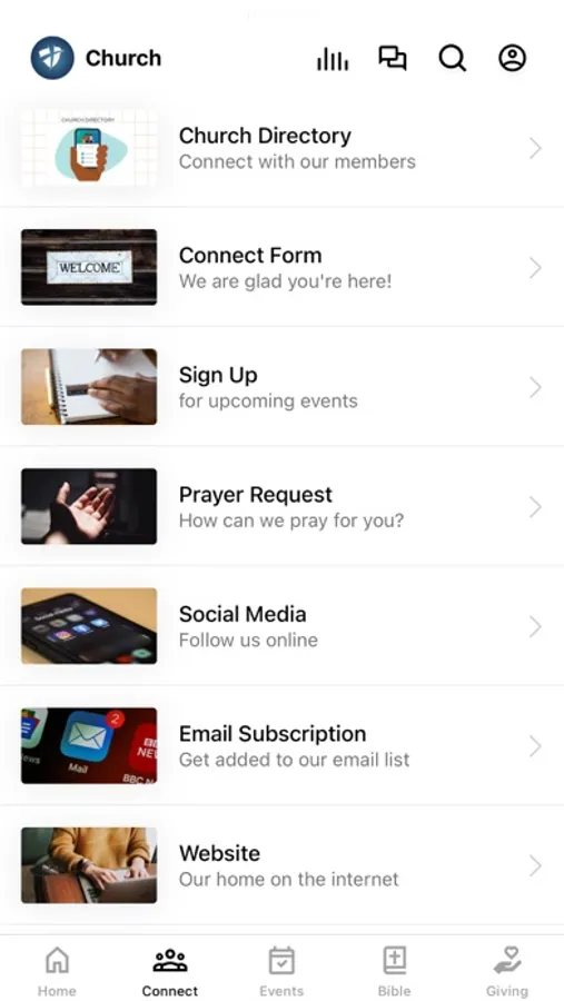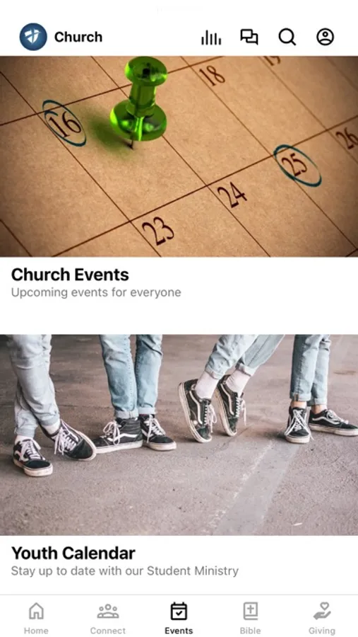This app will help you stay connected with the day-to-day life of our church. With this app you can: watch or listen to live and past messages; see upcoming events and stay up to date with push notifications; share your favorite messages; and download messages for offline listening.