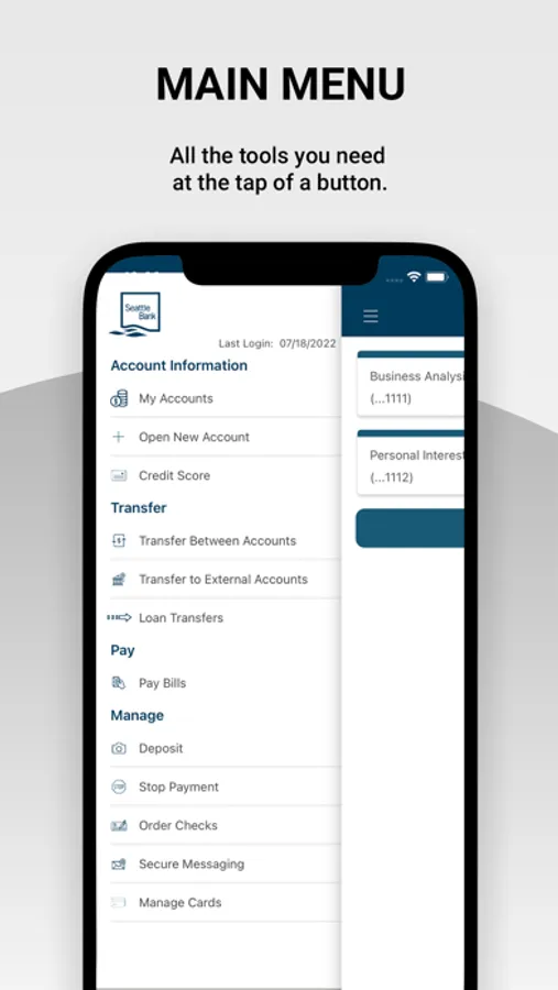 With Seattle Bank’s Mobile Banking app, you can safely and securely access your Seattle Bank accounts anytime, anywhere. With our free mobile app you can: