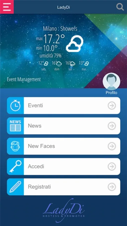 LadyDi è una applicazione per la ricerca e gestione del personale fieristico e organizzazione eventi.