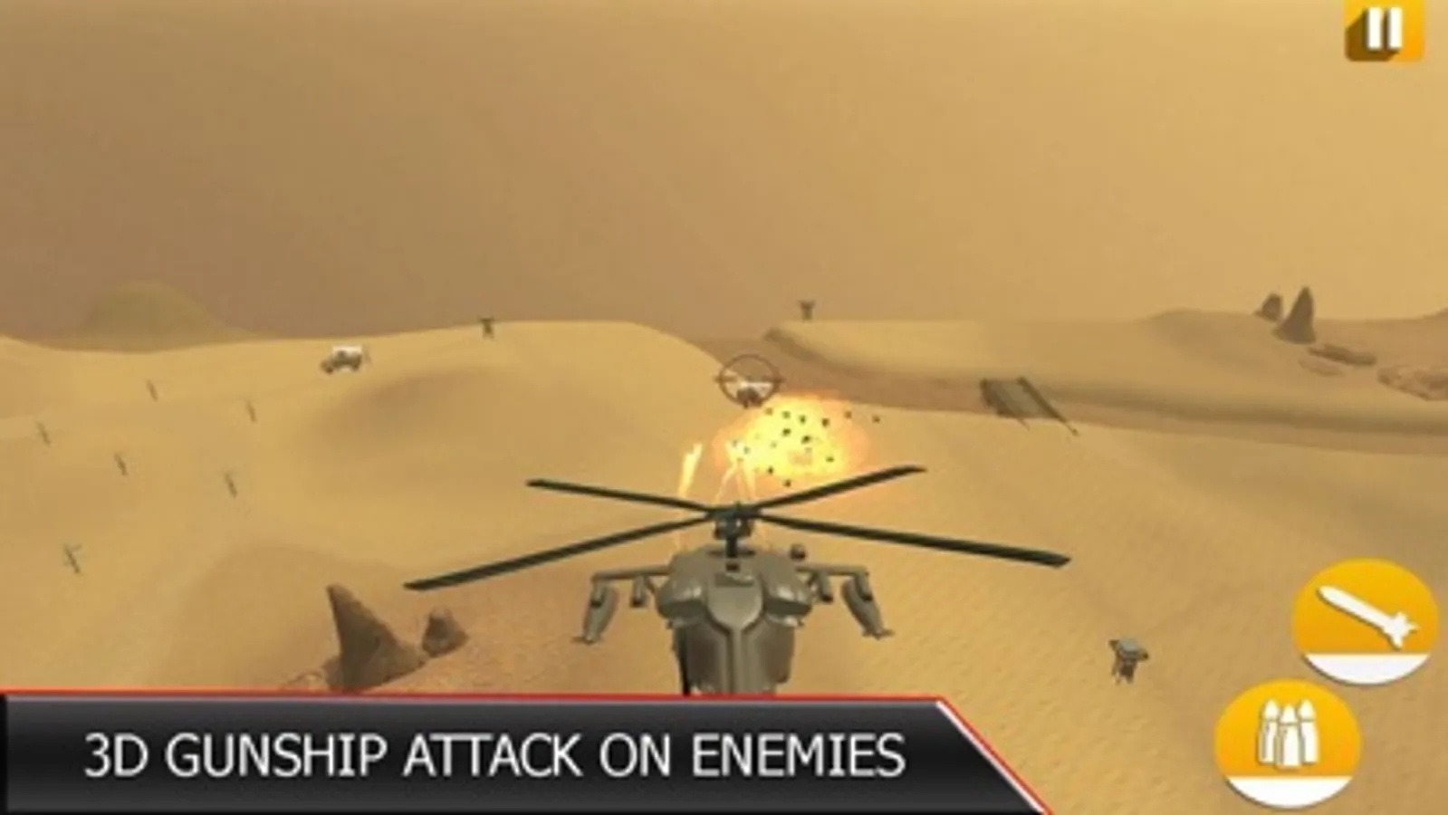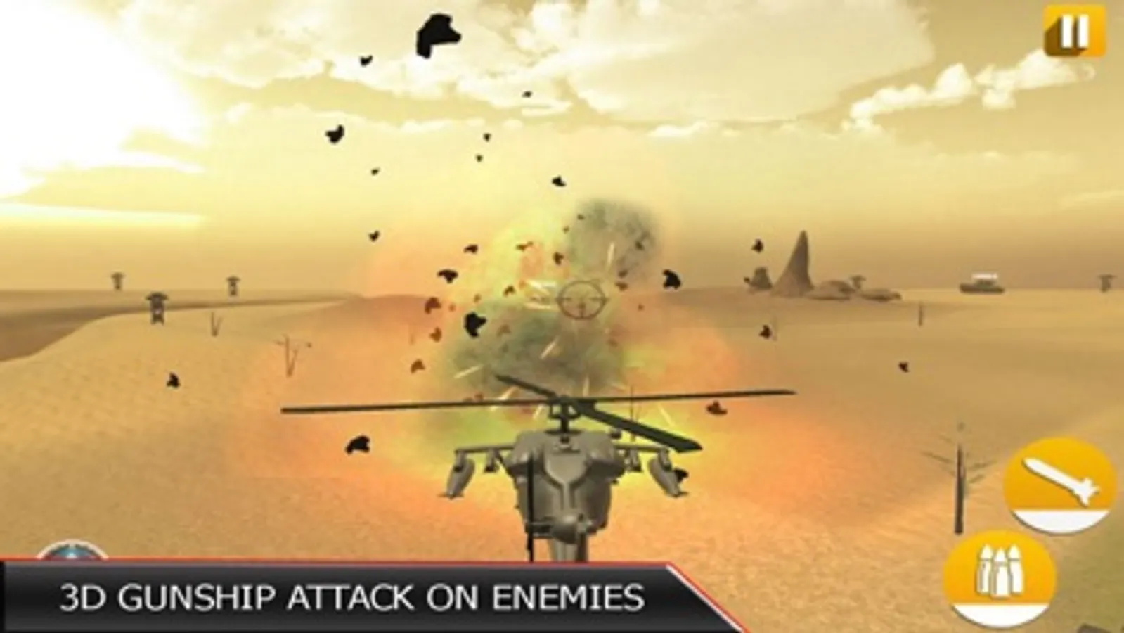 - World best 3D gunships fighters heli equipped with ammo and missiles.