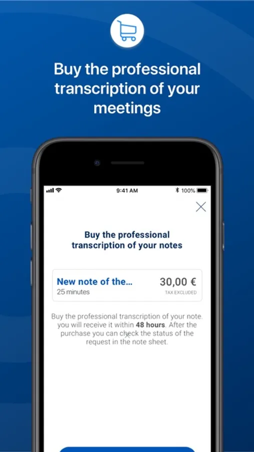 Do you need something more polished than an automatic transcription? You can request a professional transcription of your recordings made by a professional human transcriptionist. Your professional transcription will be made available directly within the app, giving you access to all your meetings and allowing you to share them with anyone you want!