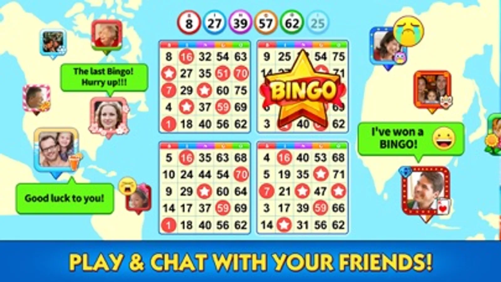 - Stay at home and enjoy hourly FREE power-ups & chips just like a bingo party!
