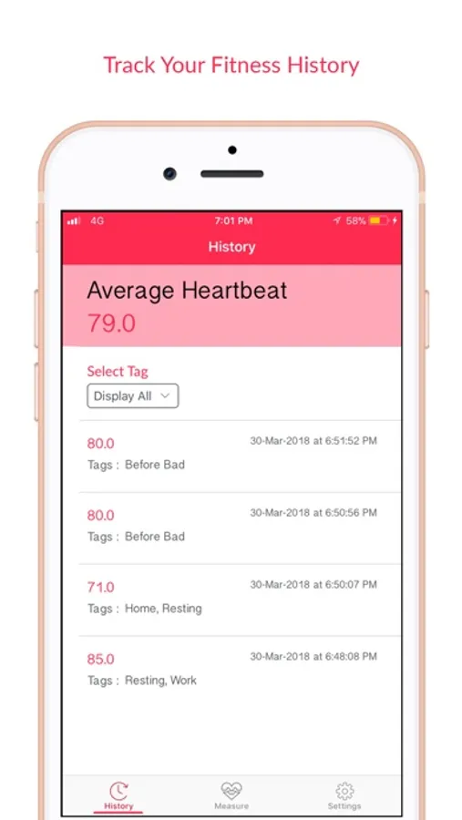The Heart Beat application calculates and automatically saves your heart rate in your profile under history.