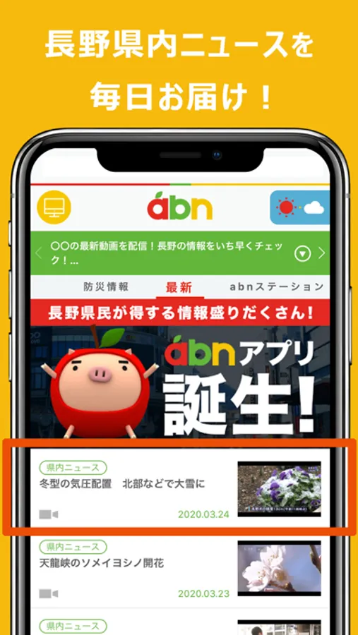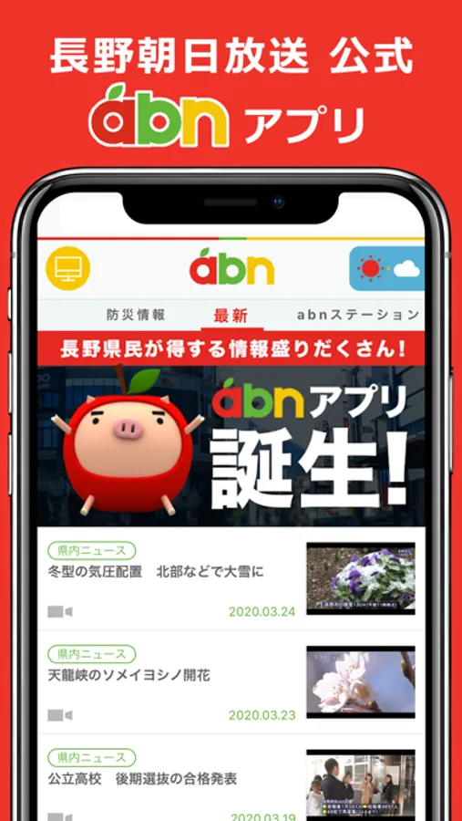 長野朝日放送のアプリが登場!abnオリジナルアプリ 『abnアプリ』。