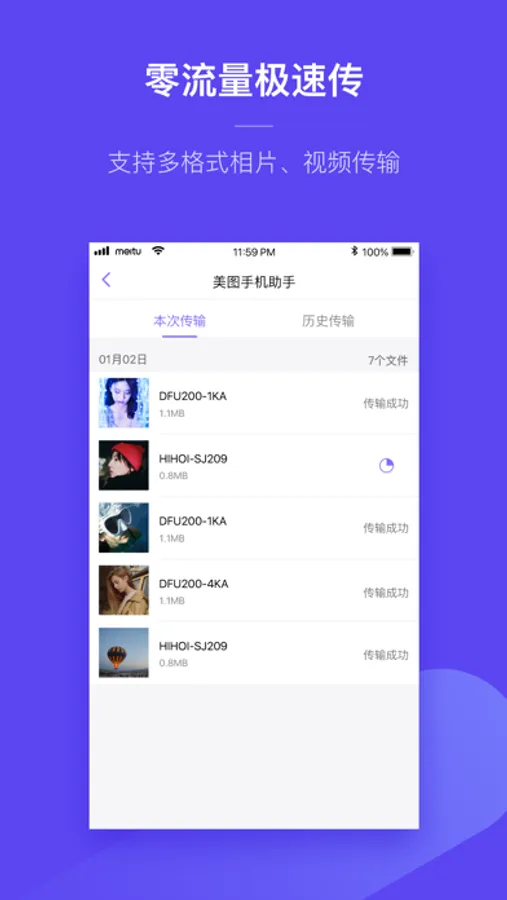 可以极速免流量实现美图手机系统相册的相片和视频跨平台传输,相较于快牙、茄子快传、闪传等传输工具,极速传图操作更加简单便捷,并且没有广告。