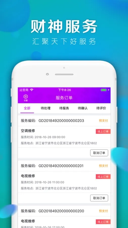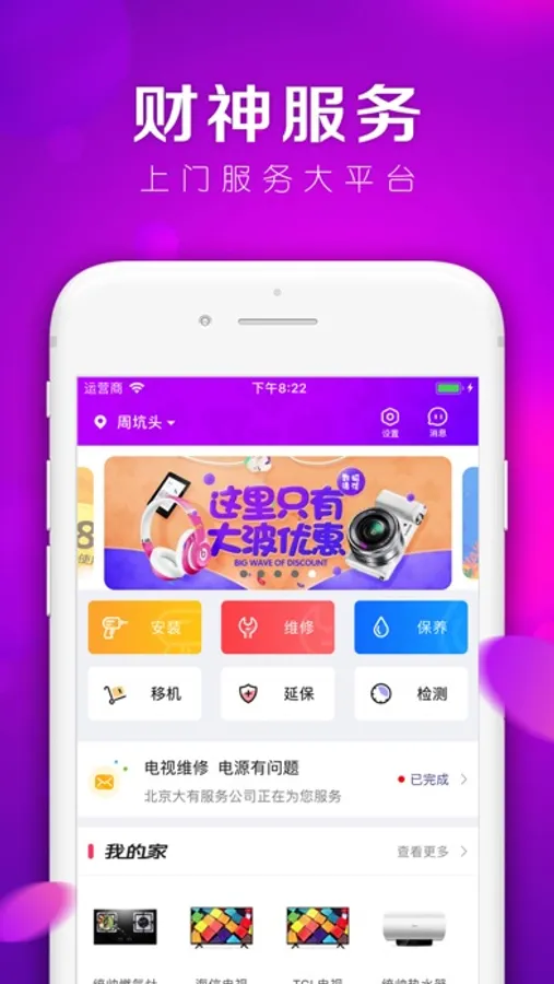 财神服务致力于家电售后服务,您的家电交给我们来爱护,无论是保养还是维修,一键下单,经过我们严格审核、专业培训的维修师傅会为你上门贴心服务。专业的家电销售场作为您家电的护养厂,让您在感受到便捷 、专业的同时,也能感受到安全与您同在。于此同时,在开通商城的城市,您可同时购买家电、配件等商品,更有超值服务为您加增。
