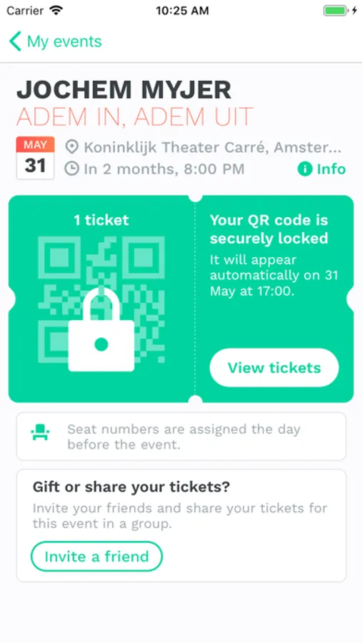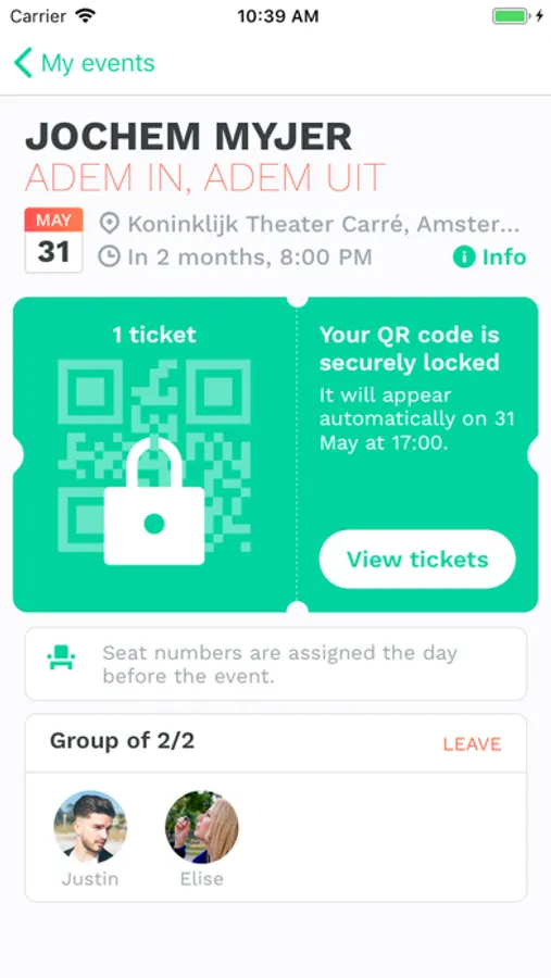 With the GUTS Tickets app you'll always have your smart-tickets just one tap away. Never again search endlessly through your mailbox to get your tickets for your favourite events. Just open the app and get in. Easy & honest tickets.