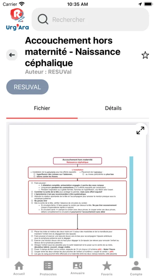- Protocoles : Les protocoles sont consultables en PDF en ligne et hors ligne pour vous accompagner dans la prise en charge des patients étape par étape