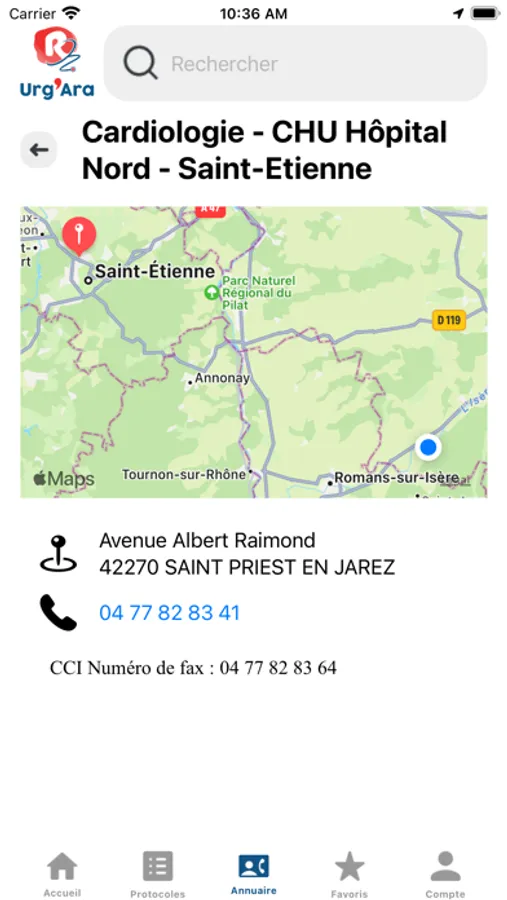 - Annuaire : Les différentes ressources (avis, services d’hospitalisation..) classés par proximité avec votre position et par filière