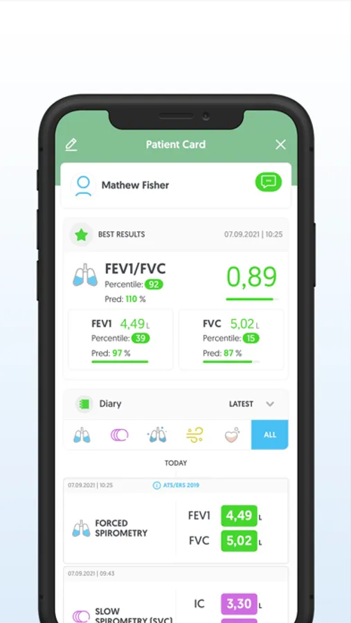AioCare Doctor is a clinically proven professional application for healthcare professionals (i.e. doctors, nurses, respiratory technicians and clinical trial investigators) to diagnose and monitor chronic respiratory diseases such as asthma, COPD, cystic fibrosis (CF), idiopathic pulmonary fibrosis (IPF) by evaluating lung function and patient symptoms in time. It is intended to be used with a portable AioCare spirometer.