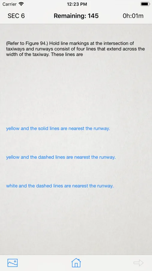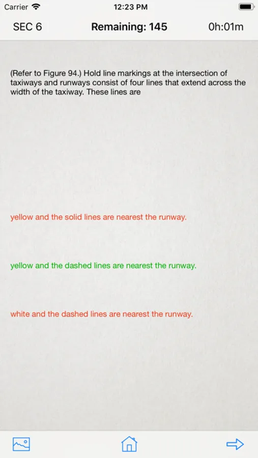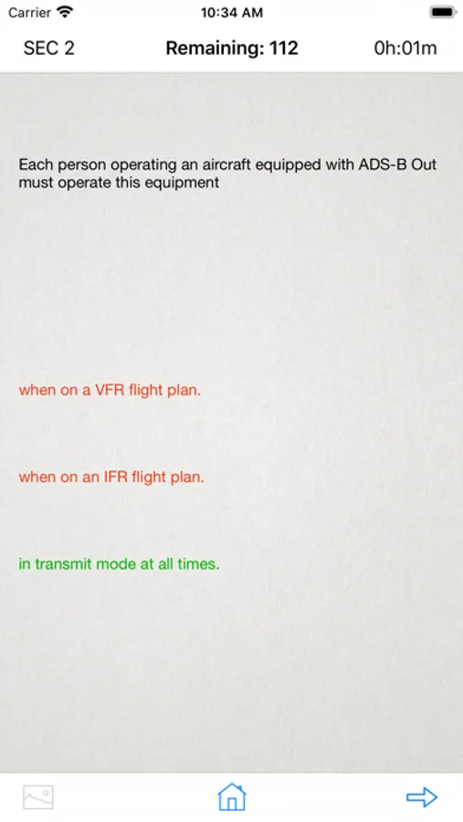 Test Mode - Simulates the test you are going to take at a FAA Knowledge Test Center. In this mode, you are asked 50 questions that are pulled from the entire question bank.