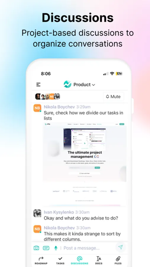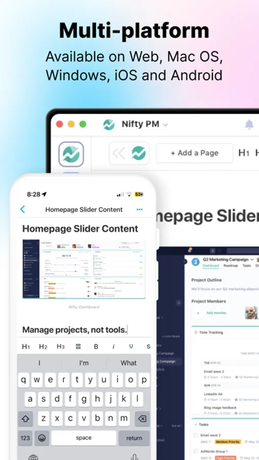 Nifty is your ultimate workflow management OS to run projects, teams, tasks, and communications in one place. One app with chats, tasks, timelines, docs, and much more.