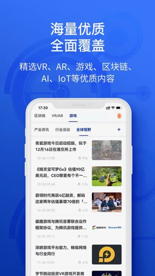 产业资讯:涵盖游戏、VR、AR、电竞、区块链、AI等领域全面深度的产业信息速递;