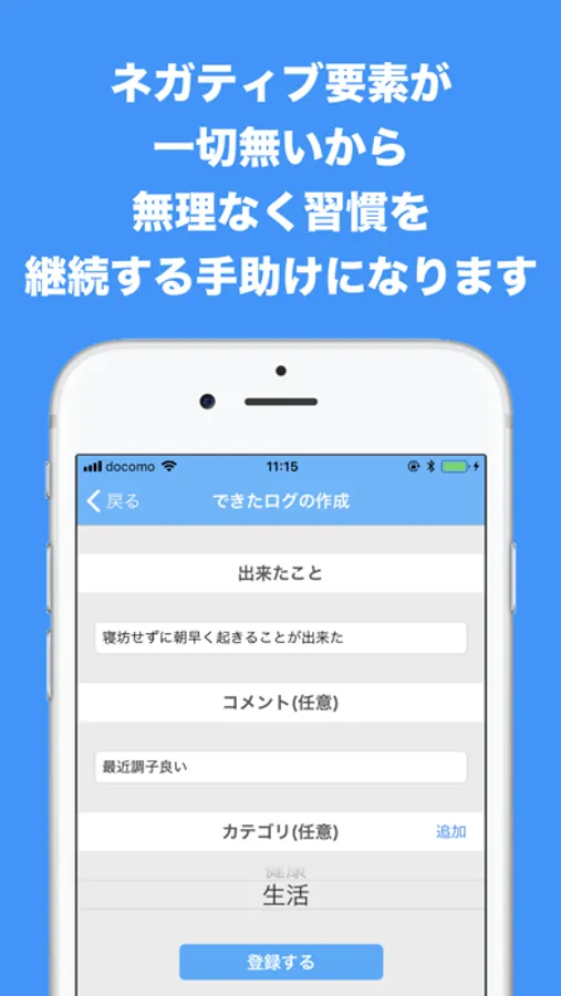 「できたログ」は出来たことを記録するメモアプリです。