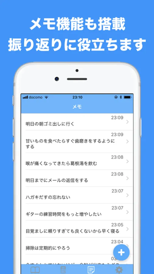 メモ機能も搭載しているので、自分の「出来たこと」に対して定期的に振り返りをしてあげるとより良いでしょう。