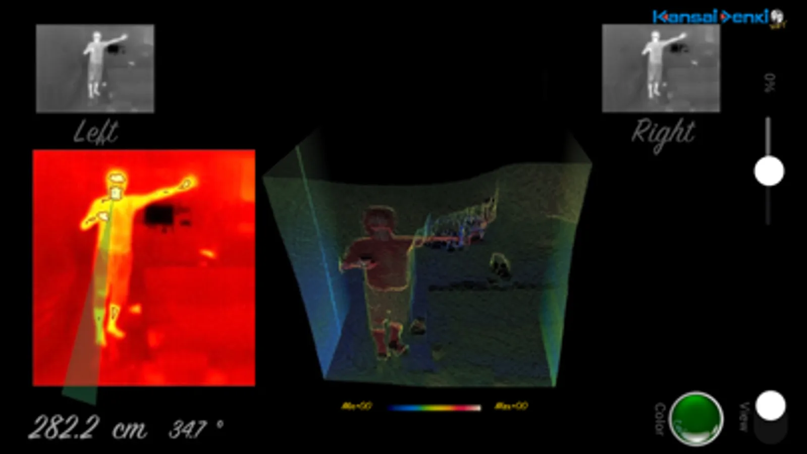 ◆2つの遠赤外線カメラを使って立体画像と暫定距離、暫定温度が確認できる実験的なアプリです。
