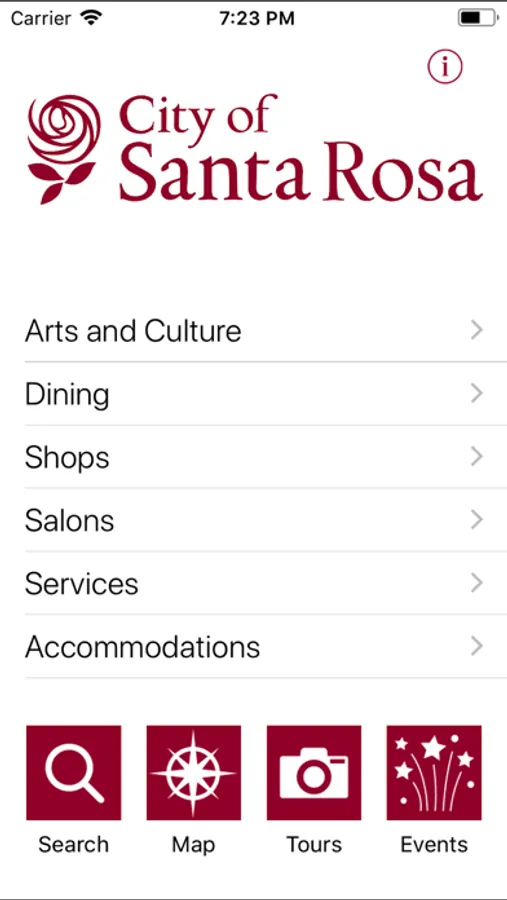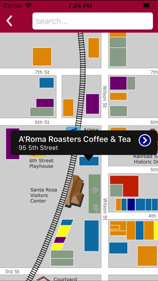 Explore downtown Santa Rosa, CA with our handy, easy-to-use guide to the area's dining, shops, attractions, services and accommodations. The app lets you drill down through the various categories, tap a business or location, and see it highlighted on our custom map of the downtown area. This map was handmade and diagrams each and every storefront and attraction in the area. It's color coded by category.