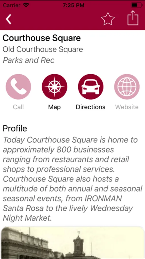 Tap a business and see more information and pictures, and link to reviews and its website. You can email the business you've pulled up. You can also tap the map itself to pull up individual businesses.