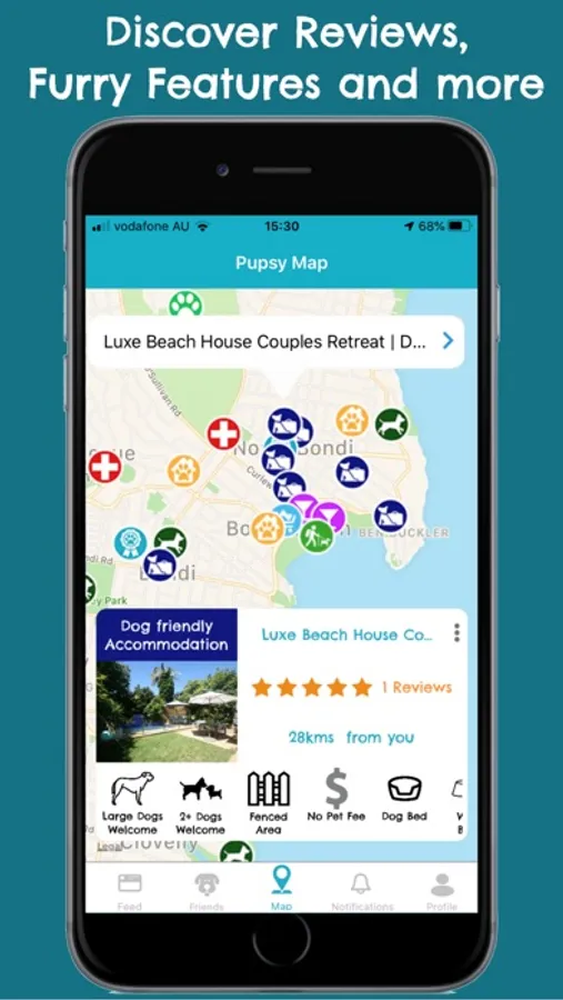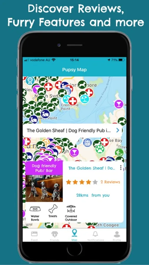 Simply browse the map and use the interactive icons to read more about the venue. Read and leave reviews to learn and share. On Pupsy all reviews are written on behalf of the dog’s themselves so you will always have an idea what your pooch can expect.