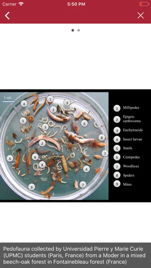 Once all figures (about 150) have been opened a first time (with a fiber connection, the download of all the figures takes few minutes), the iOS device on which the application has been downloaded does not need to be connected to the Internet to run the application. The recall through touch-buttons of photographs allows a classification of the humus forms and the main groups of animals that live there even for beginners.