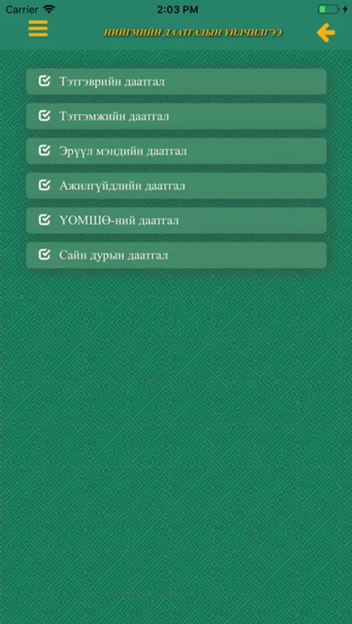 Даатгуулагч та энэ програмыг ашиглан өөрийн Нийгмийн даатгалд даатгагдсан байдал, авсан зардал, тэтгэвэр, тэтгэмжийн талаар болон, Нийгмийн даатгалтай холбоотой хууль, тогтоомжийн талаар мэдээлэл авах боломжтой.