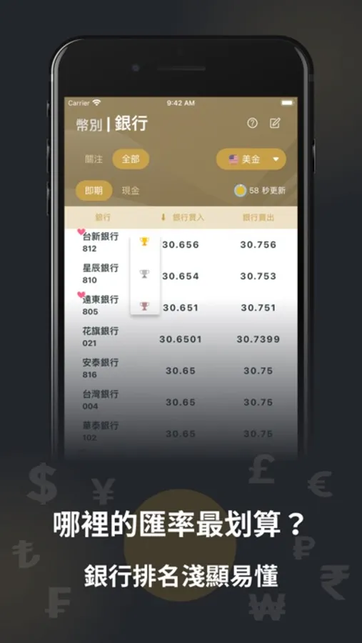 可自選關注的匯率與銀行,資訊清澈明瞭