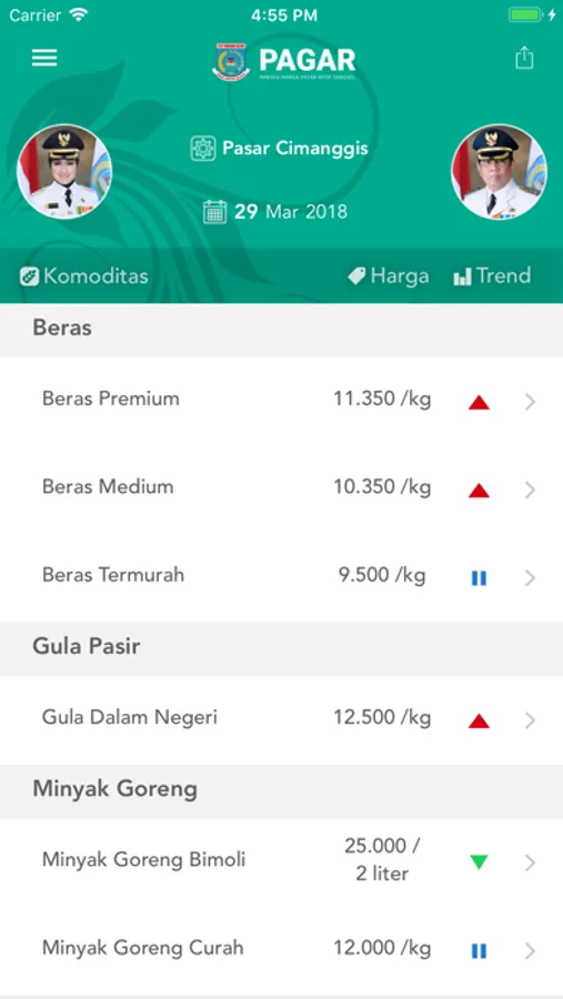PAGAR (Pantau Harga Pasar) Kota Tangerang Selatan menjadi solusi untuk media informasi harga pokok yang selalu diperbarui, terpadu, lengkap, dan resmi dari Pemerintah Kota Tangerang Selatan.