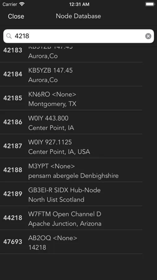 * Search the ALLSTAR Node database for a specific node and connect to it