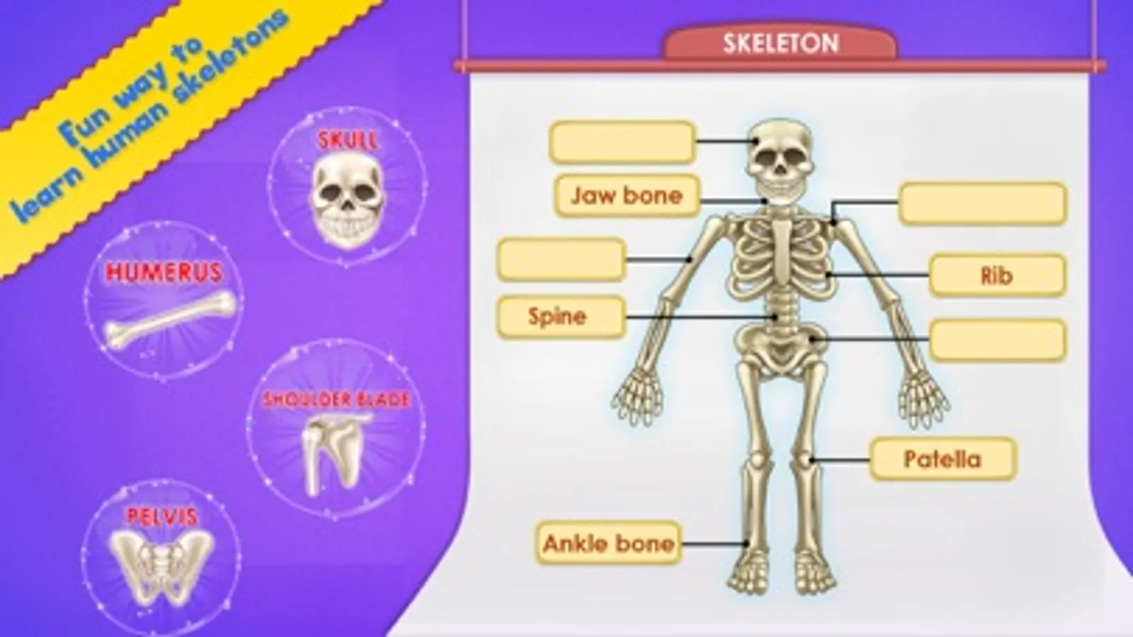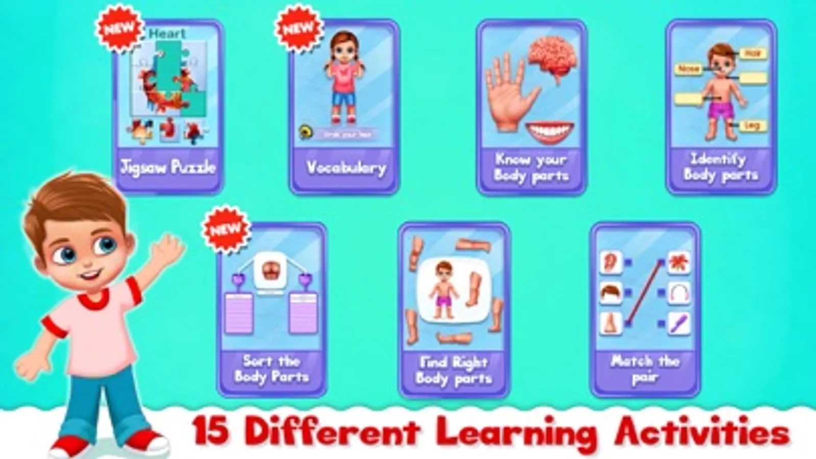This educational app helps recognize different body parts (like eyes, ears, nose, hands, legs, stomach, etc.), and learn about it. Not only outer body parts we have a lot of internal organs and skeletons as well to learn. A unique and interactive way to learn and recognize Human Body Parts basics.