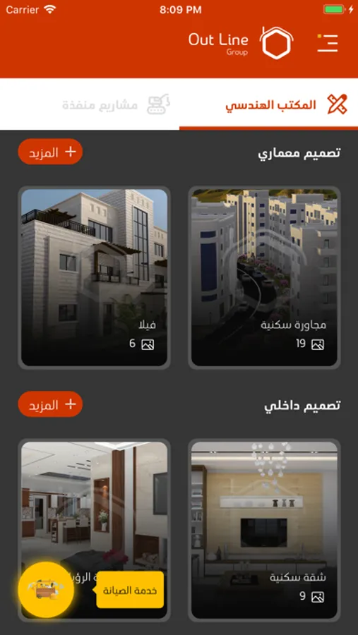 ويعرض التطبيق أعمال التصميم المعماري و الديكور الخاصة بالمكتب و المشاريع المنفذة و المشطبة، ويتميز بتقديم خدمة جديدة من نوعها الصيانة المنزلية والمكتبية لعملائه الحاليين والجدد عن طريق الاشتراك بالخدمة من خلال زيارة المكتب.